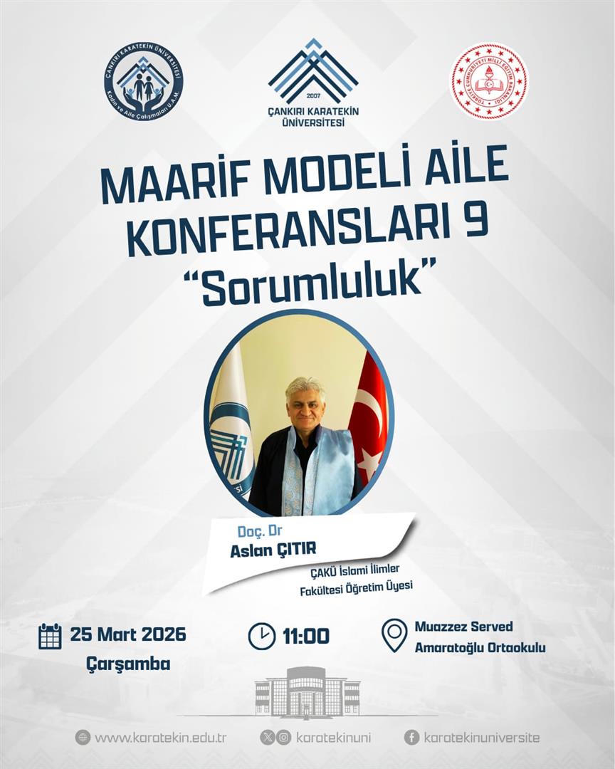 Assoc. Prof. Dr. Aslan Çıtır, a faculty member at the Faculty of Islamic Sciences at Çankırı Karatekin University, conducted a seminar on the topic of “responsibility” for parents at Muazzez Servet Amaratoğlu Middle School as part of the Maarif Model Family Conferences.